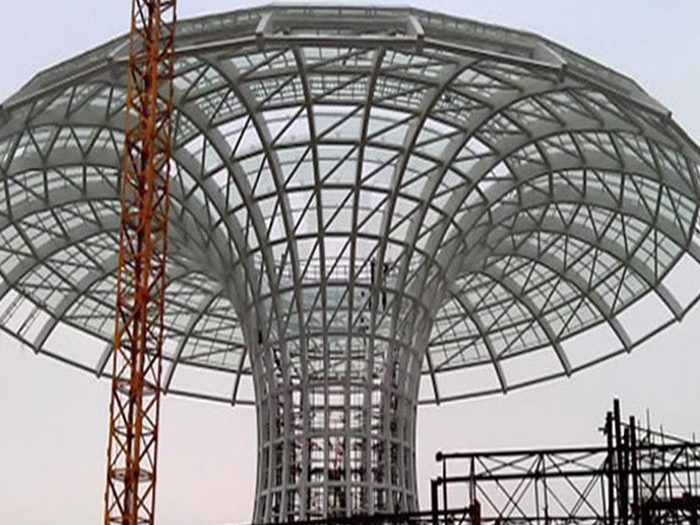 二、球形网架结构因其结构新颖,受力合理,自重轻、用钢量低等优点。如大型体育场馆球形汾阳螺栓球网架、公共场馆球形网架、电厂汾阳螺栓球网架、水泥工业球形网架、仓储物流球形网架、汾阳干煤棚工业球形网架、汾阳收费站汾阳加油站球形网架、展览中心、影剧院、商场、航站楼、候车厅、工厂汾阳车间、仓库、电视塔等球形螺栓球节点网架。国内球形网架结构主要分为:汾阳焊接球节点网架及螺栓球节点网架两种。螺栓球节点网架其构件工厂内加工量较大,现场安装便捷,适用于现场工期紧,汾阳施工条件、用电量受制约,网架形状复杂、汾阳杆件定位困难的异形结构。螺栓球节点球形网架系统基本由汾阳杆件、螺栓球、支撑支座等组成。按照节点形式可分为交叉汾阳桁架体系、四角锥体系、三角锥体系等。支撑方式多为固定支座支撑。对于大面积、大跨度及有特殊受力或伸缩要求的网架结构可采用橡胶支座、滑移支座、球铰支座等支撑形式,以满足结构自身的受力稳定、均衡,便于内力释放等设计要求。